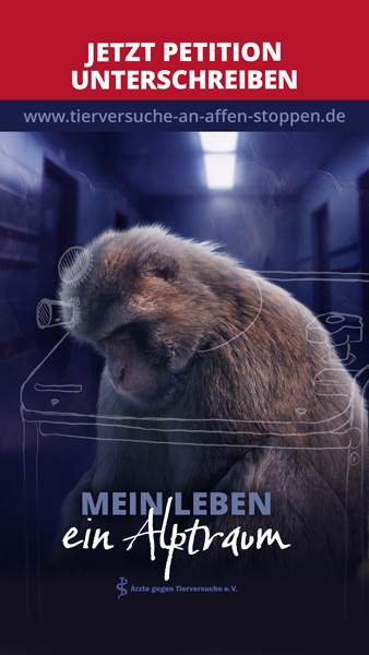Ärzte gegen Tierversuche e. V. hat gemeinsam mit PETA Deutschland eine Bundestagspetition eingereicht, die ein Ende von Tierversuchen an nicht-menschlichen Primaten in Deutschland fordert.
